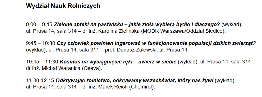 Wykład odbędzie się w piątek, 24 października 2025 r., o godz. 9:45 na Wydziale Nauk Rolniczych Uniwersytetu w Siedlcach przy ul. Prusa 14, sala 314.